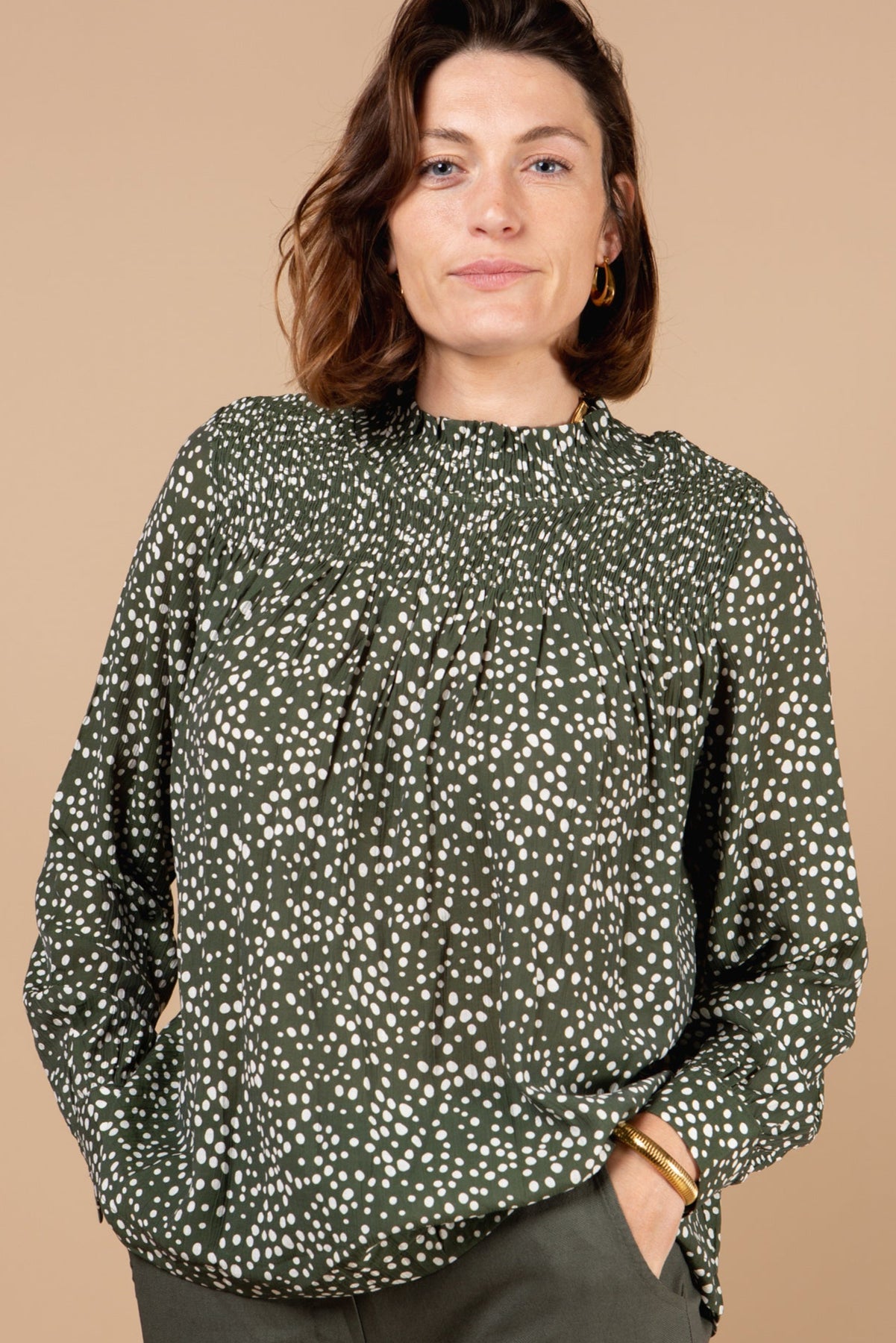 Elevate your everyday style with our Ditsy Spot High Neck Blouse. Designed for effortless elegance, this versatile blouse features a delicate ditsy spot print and a softly gathered high neck that adds a touch of sophisticated charm.