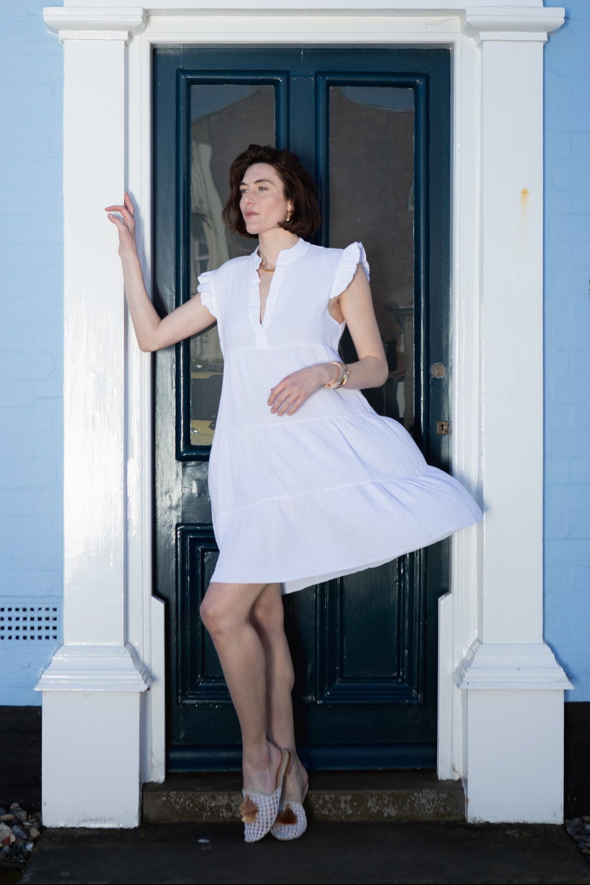 Our Flutter Sleeve Dress features delicate, voluminous sleeves adding movement and femininity, whilst the knee-length cut offers a flattering, versatile silhouette perfect for any occasion.