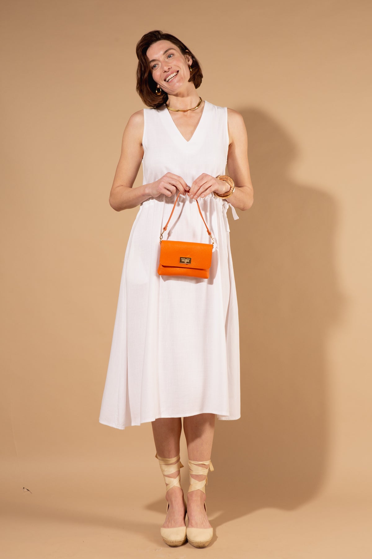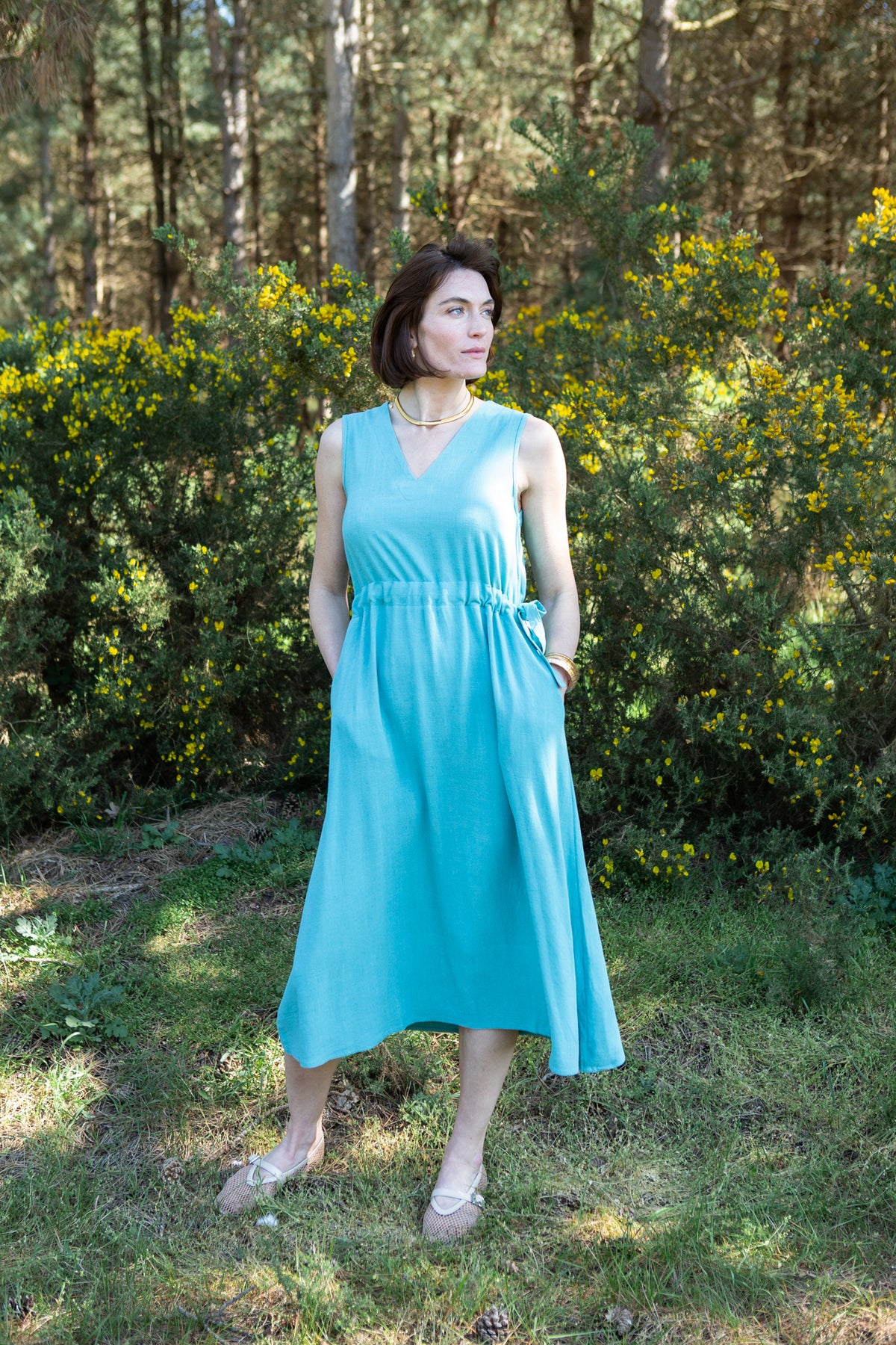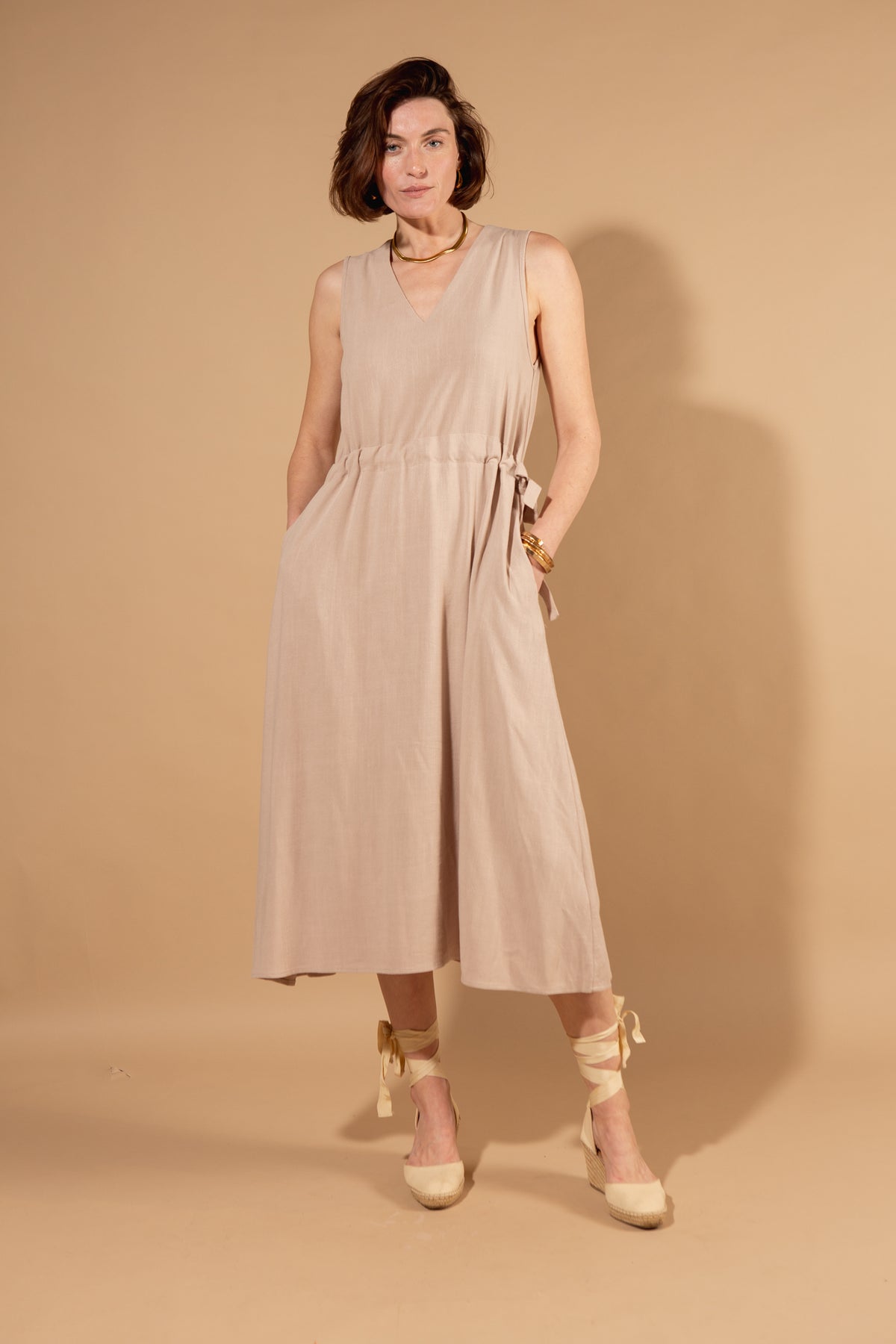 The ultimate summer staple, this midi dress is crafted from a breathable linen-mix fabric designed to keep you cool. Featuring a versatile drawstring waist, it allows you to switch between a relaxed shift style and a more defined, cinched-in silhouette with ease.