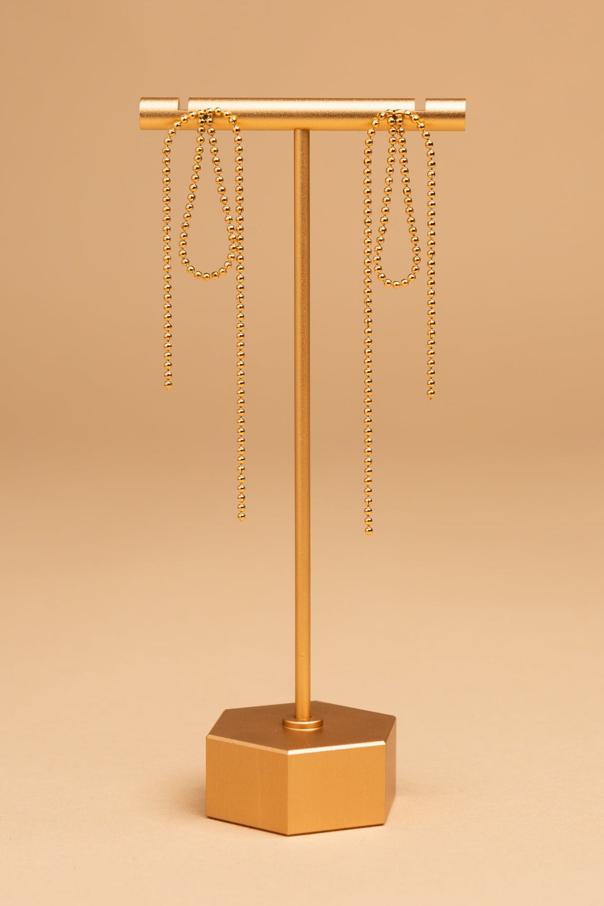 Gold-tone chain drop earrings with fluid movement. A sleek, contemporary design, moving from day to night.