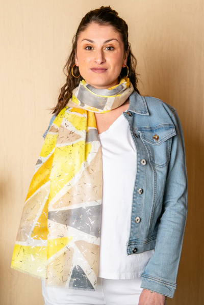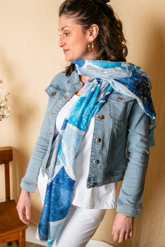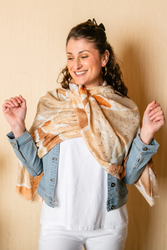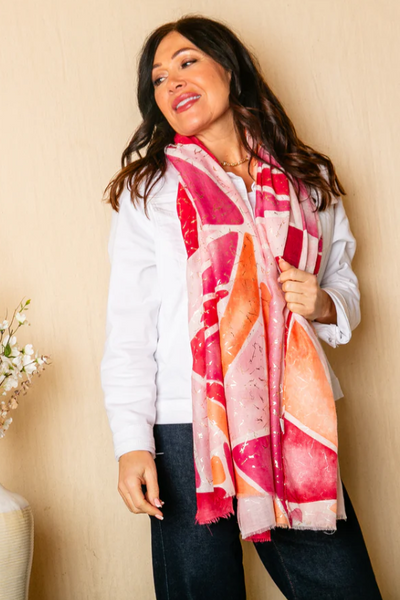 Soft, breathable, and effortlessly chic, this cotton scarf is the perfect layering piece for spring and summer. Featuring a stunning abstract design and available in five gorgeous colours, it’s ideal for adding a touch of elegance to any outfit.