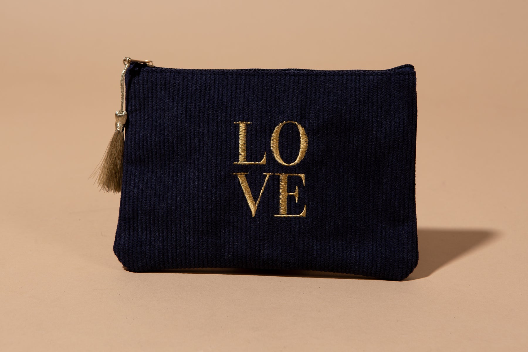Add a touch of texture and personality to your essentials with the Love Make Up Bag. Perfect for stashing makeup, small tech accessories, or travel necessities, this pouch combines a soft, plush corduroy finish with charming details that make it a standout piece.