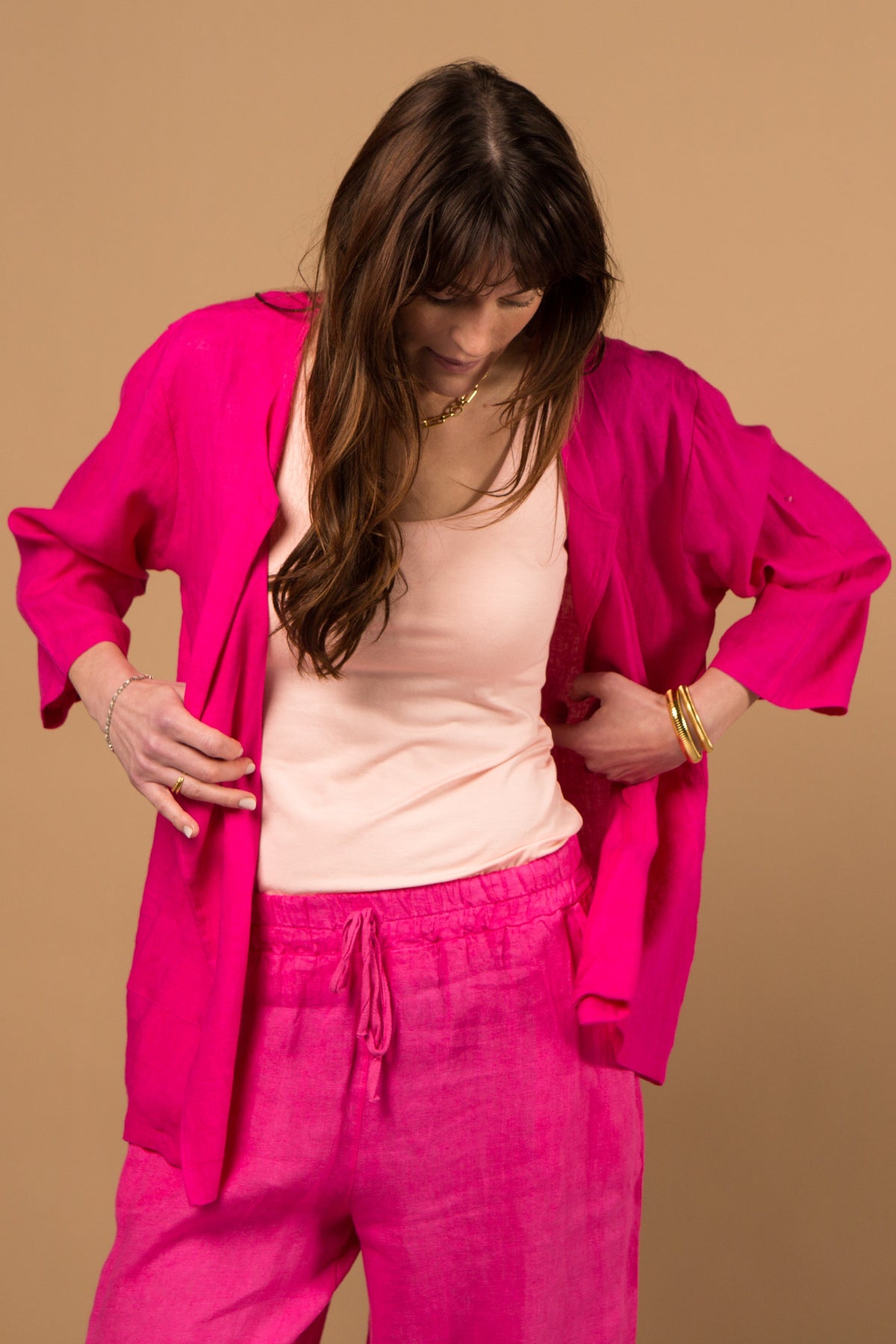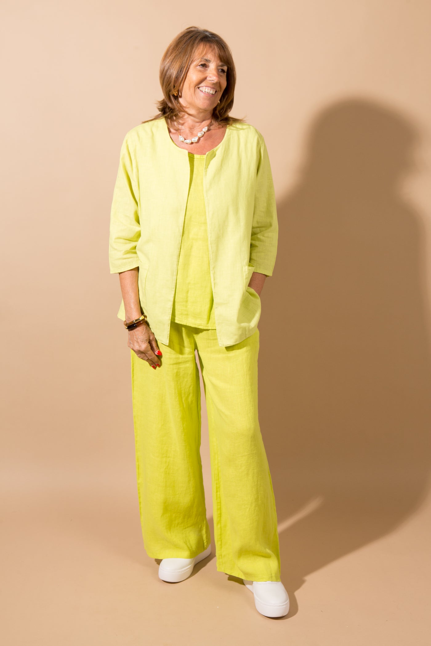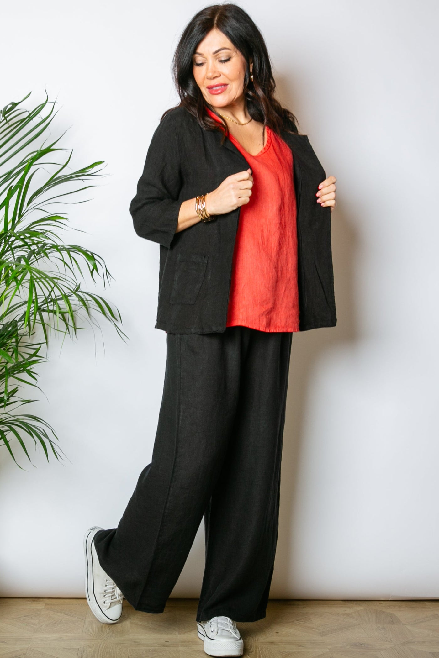 Add a touch of effortless elegance to your wardrobe with our open-front linen jacket. Designed for versatility, this lightweight jacket comes in four stunning colours and features a relaxed fit that complements any outfit. Perfect for layering, it pairs beautifully with our linen trousers, for a coordinated look, or with jeans for a more casual vibe. Complete the ensemble by styling it over our sleeveless linen vest. One size fits most, offering both comfort and style for the modern wardrobe.